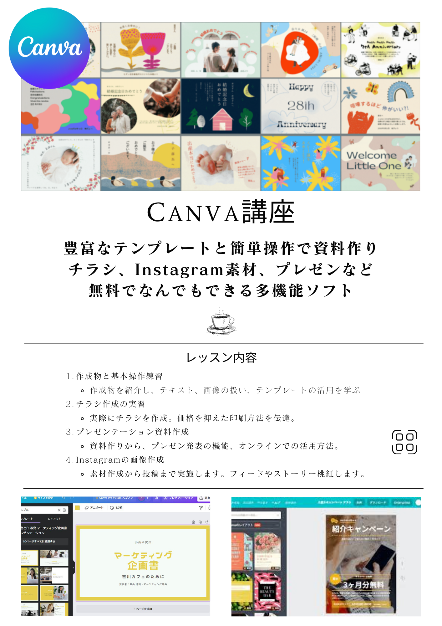 Canva、Instagram、Googleツールを使いこなせるパッケージレッスン